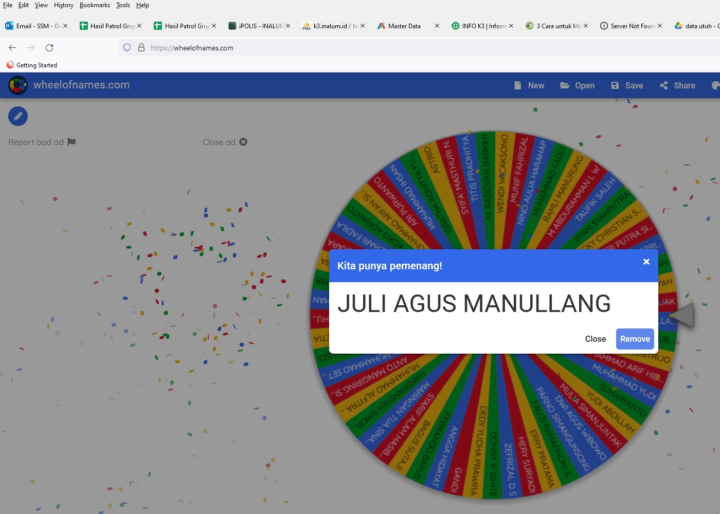 3 pemenang beruntung (aplikasi undian online Spinner):